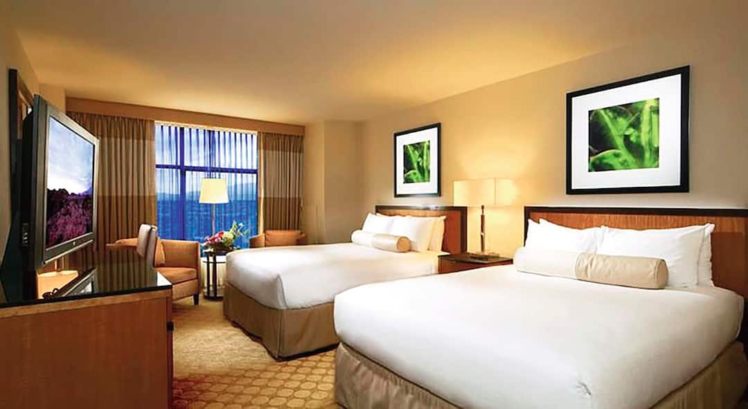 The amenities were ideal Starbucks, nice Chinese restaurant, 24h bars serving food and so much cheaper for drinks than the strip ($3 frozen margaritas!). Massive casino space and nice quiet pool...