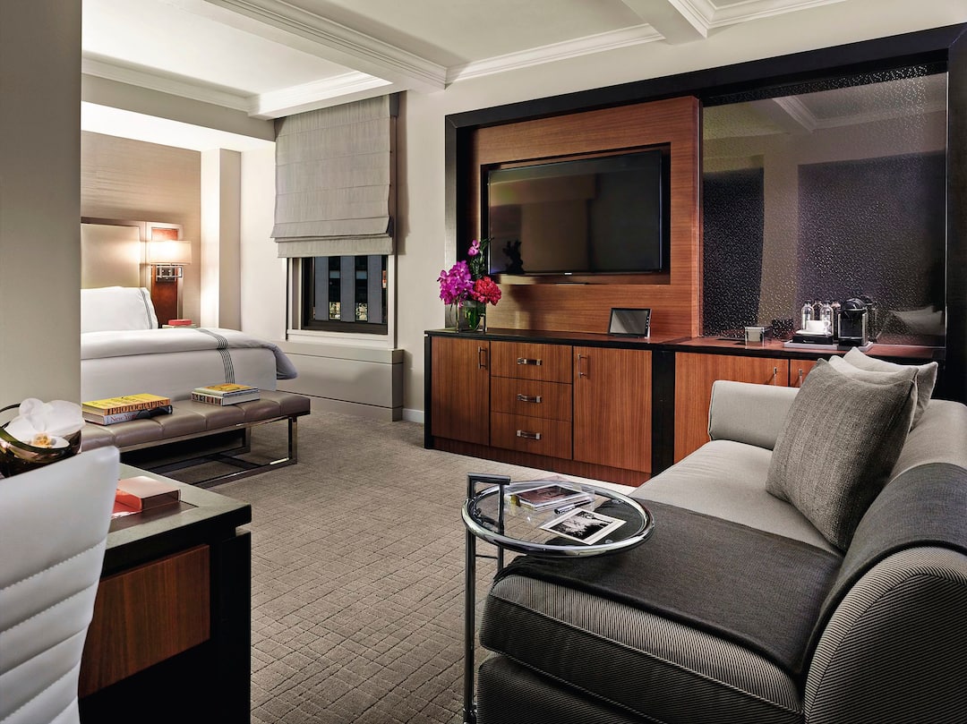 Room was large for NYC, modern bathroom. We were on 6th floor facing 57th and not noisy at all. Two elevators and not long waits. No complaints. Comfortable bed, but wouldve preferred firmer pillows!...