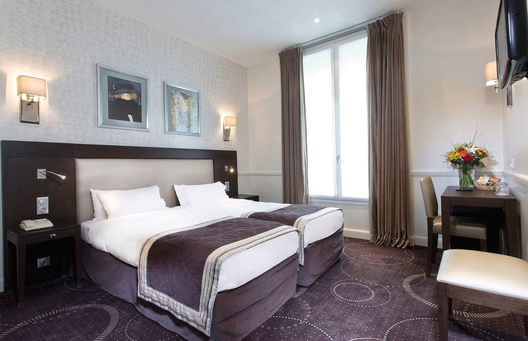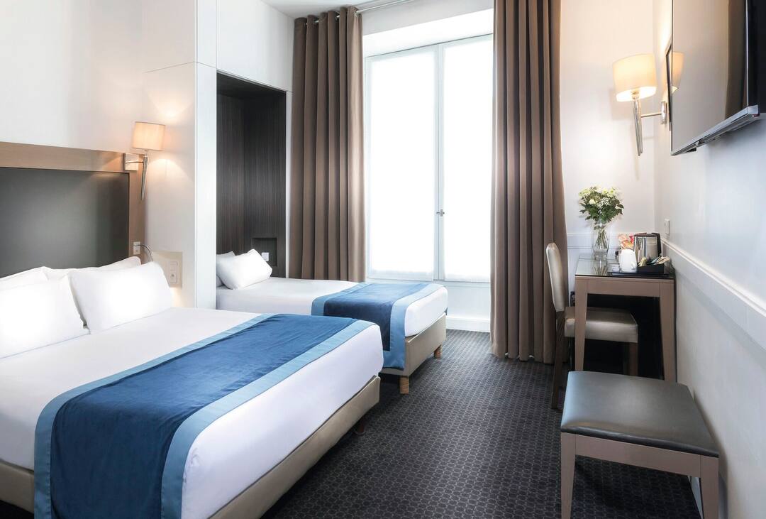 I stayed at this hotel during a long term vacation and let me tell you this is a HIDDEN GEM on a street near the Arc de Triomphe. The hotel is clean, the room isnt spacious but its more than enough and very tidy. Staff is super friendly (which is something you truly appreciate while in Paris) and the breakfast is generous and absolutely delicious. Definitely one of the best-kept secrets and not expensive at all...