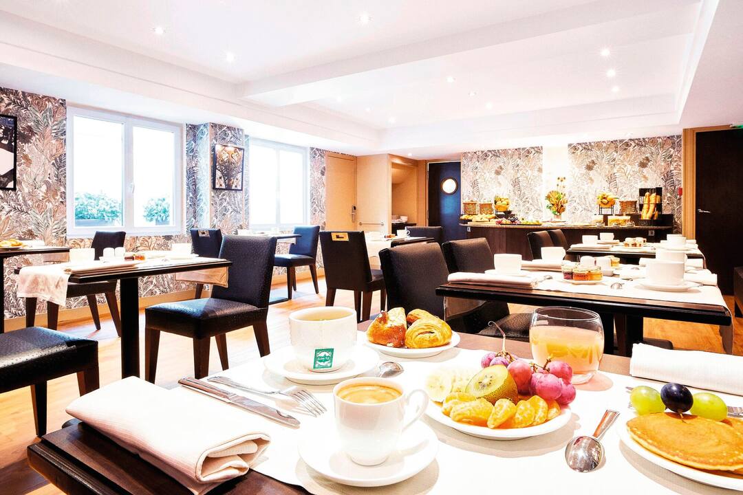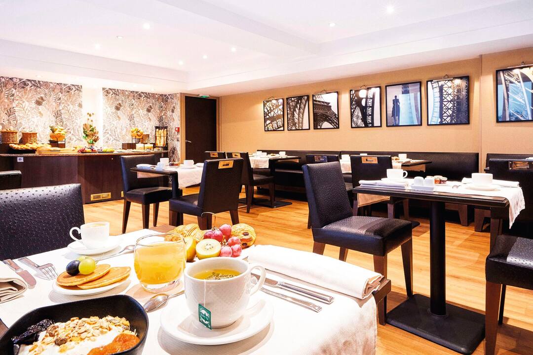 This hotel is in a great location just blocks from the Eiffel Tower and Siene river..There are plenty of restaurants just a short distance away,pastry shops, Grocery stores .. The front desk was very helpful.Multi-linguile,They provided maps and helped with our transportation needs......